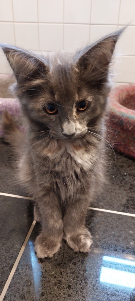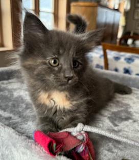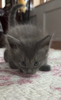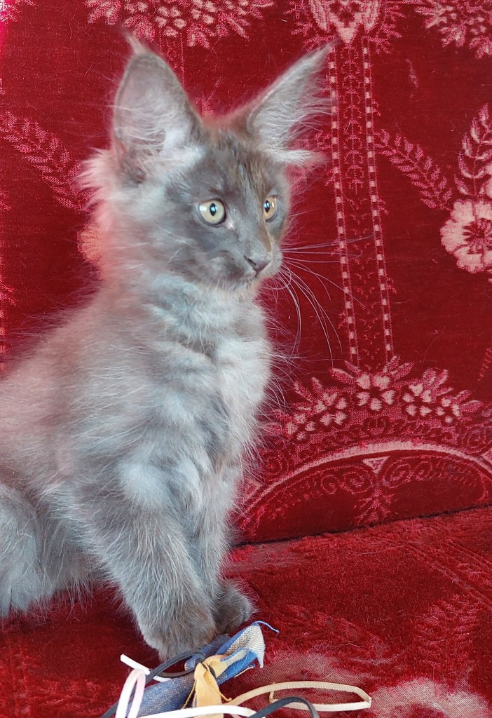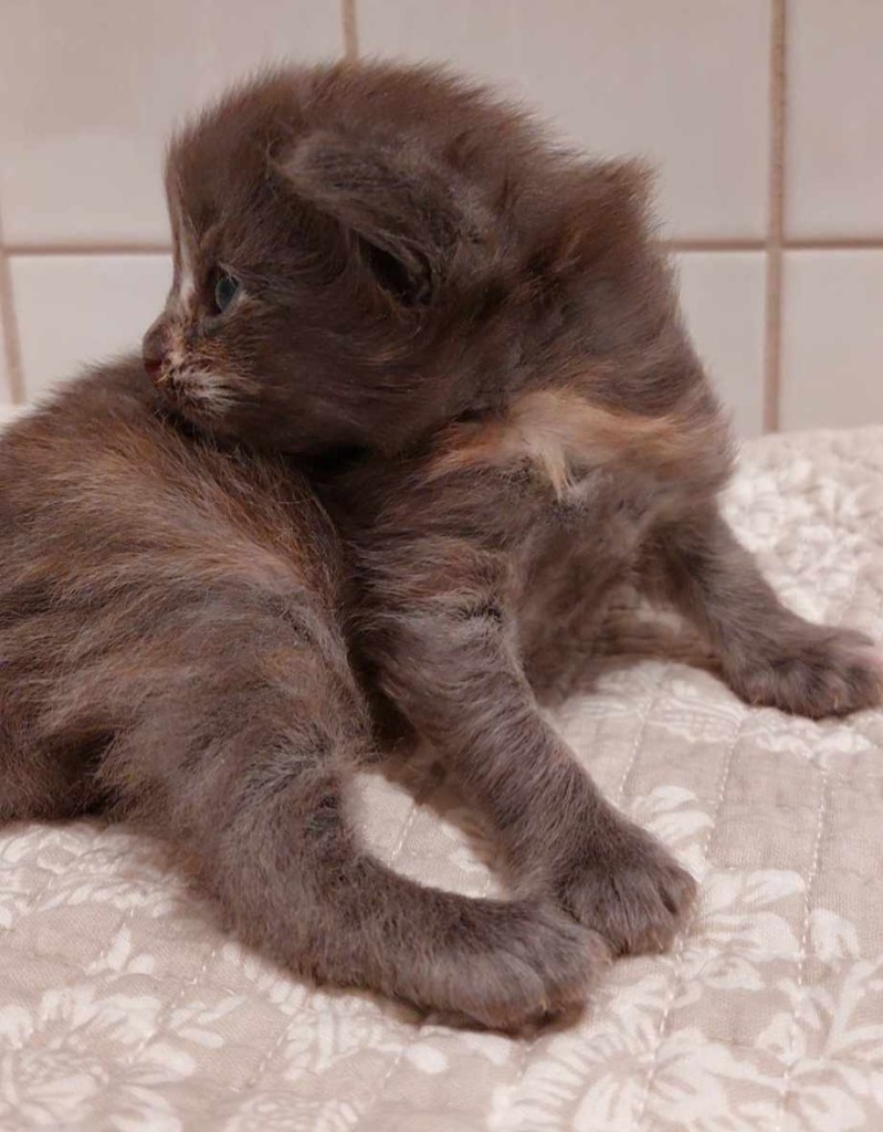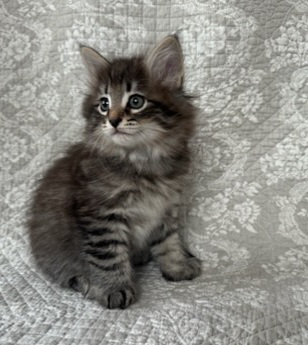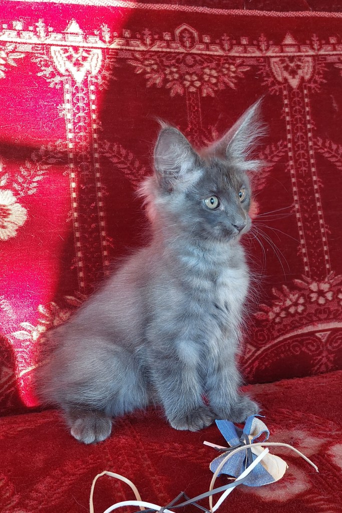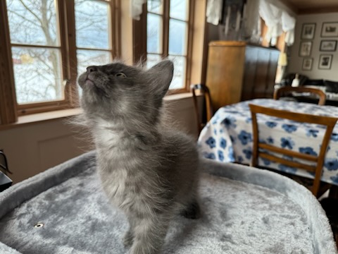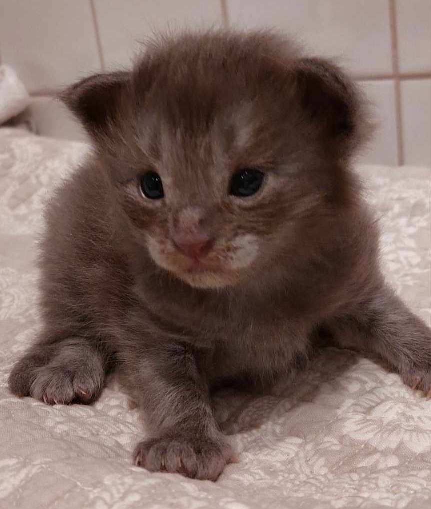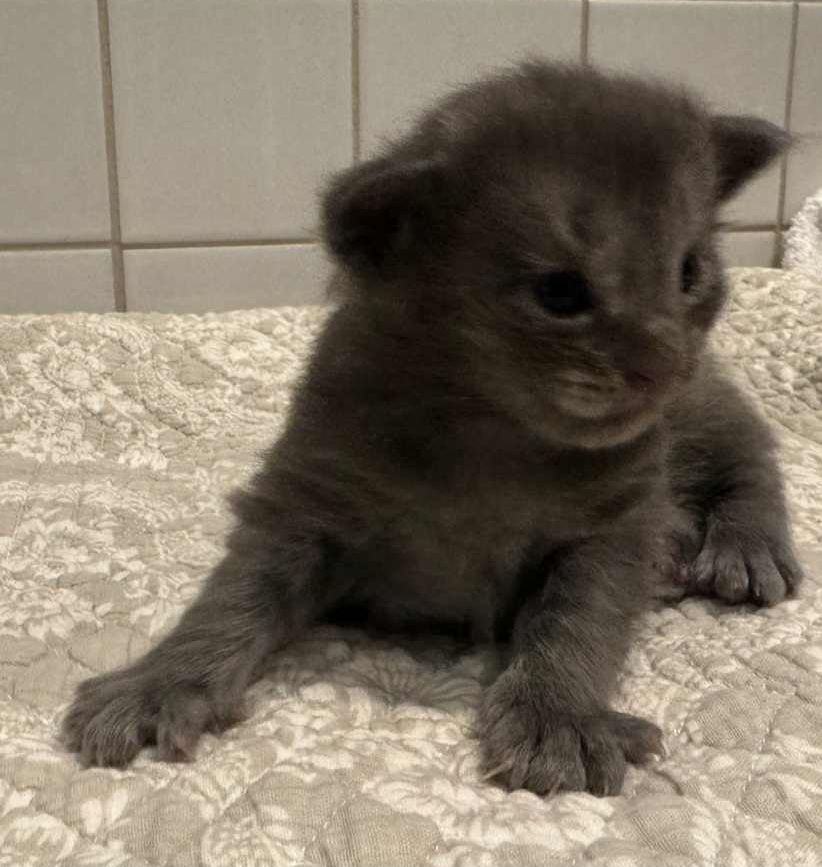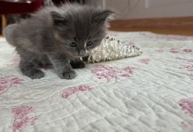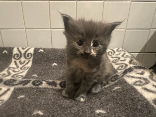 Fosenkattens Abigail NFO g er en solidfarget blåskilpadde med vakker gråfarge og nydelig creme flekker. Hun er kullets sjarmtroll. Hun er den mest kontaktsøkende av kattungene og er utrolig søt.