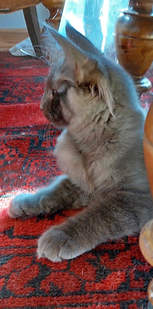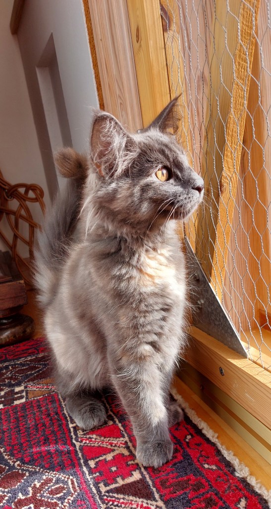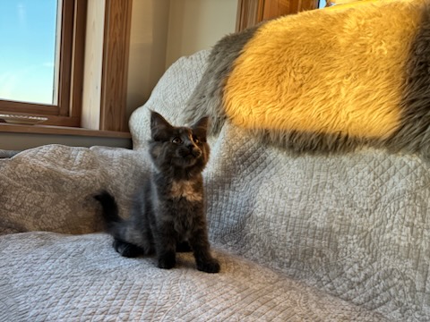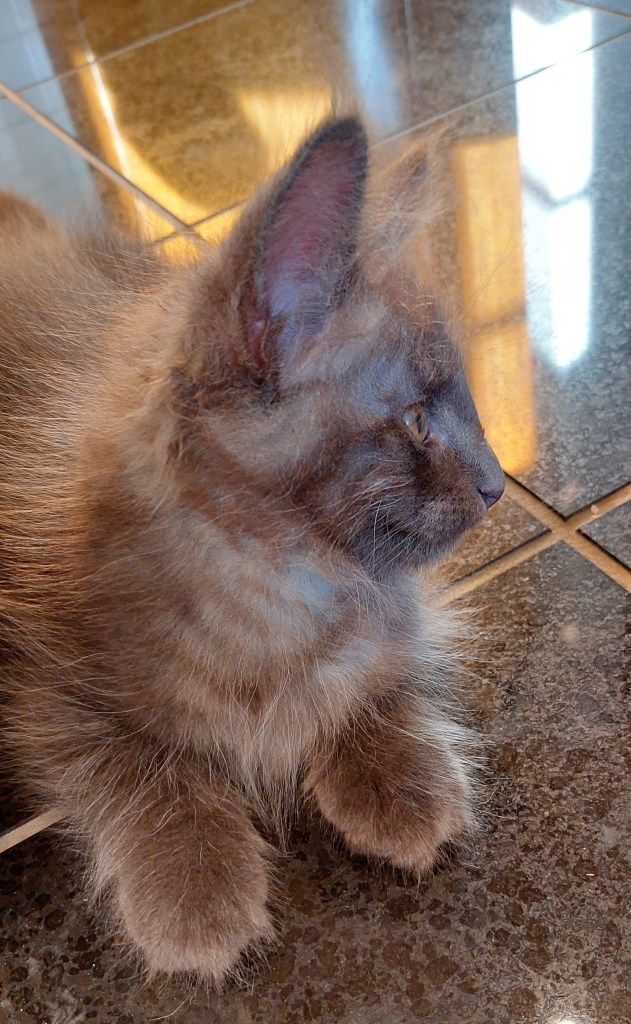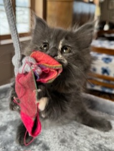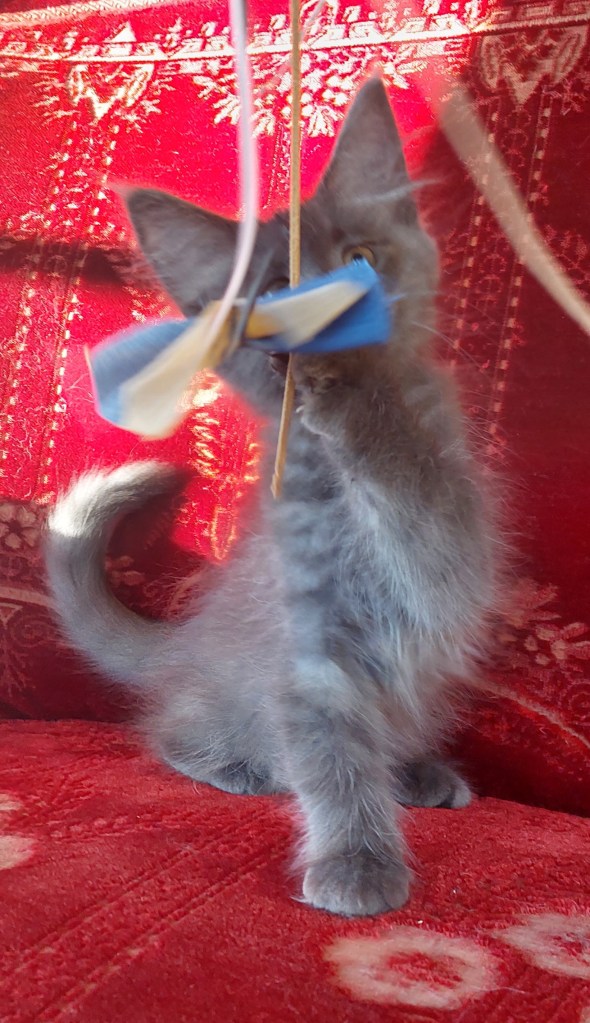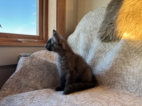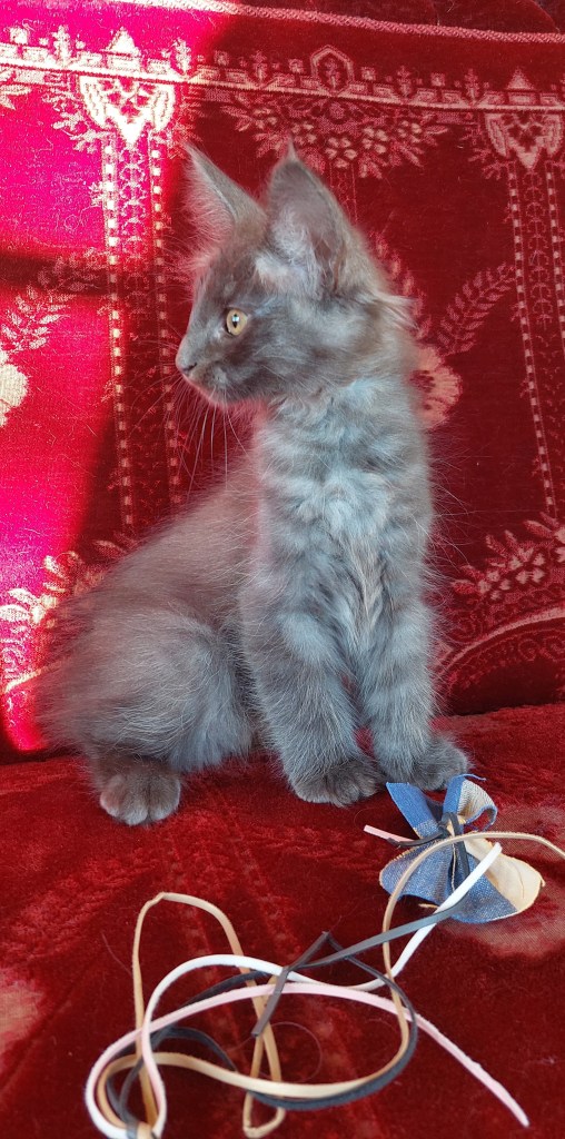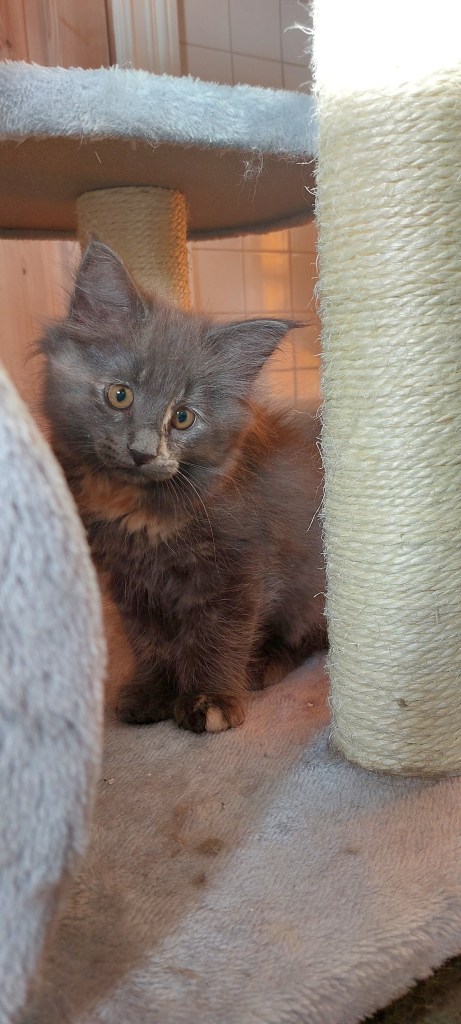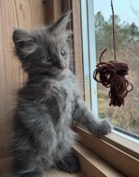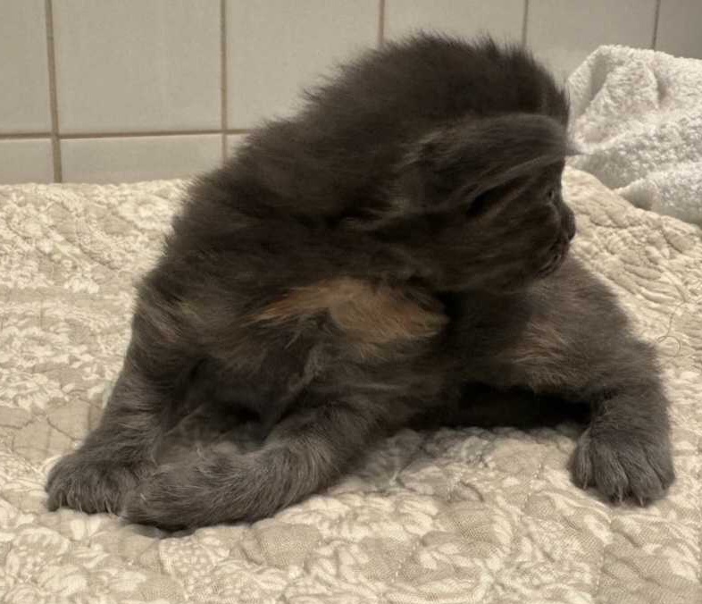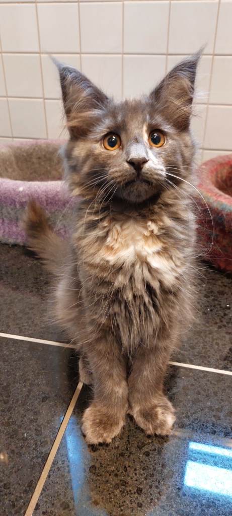 Fosenkattens Abigail NFO g er en solidfarget blåskilpadde med vakker gråfarge og nydelig creme flekker. Hun er kullets sjarmtroll. Hun er den mest kontaktsøkende av kattungene og er utrolig søt.