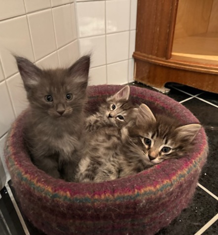 Dette er A-kullet etter Ekebergtrollet´s Hermine og Ekebergtrollet´s Glenn Miller, som kom til verden den 11. desember i 2023. Det er tre hannkatter og ei hunkatt. Fødselsvekt fra 100-150 gram. Store og fine unger etter en uproblematisk fødsel.